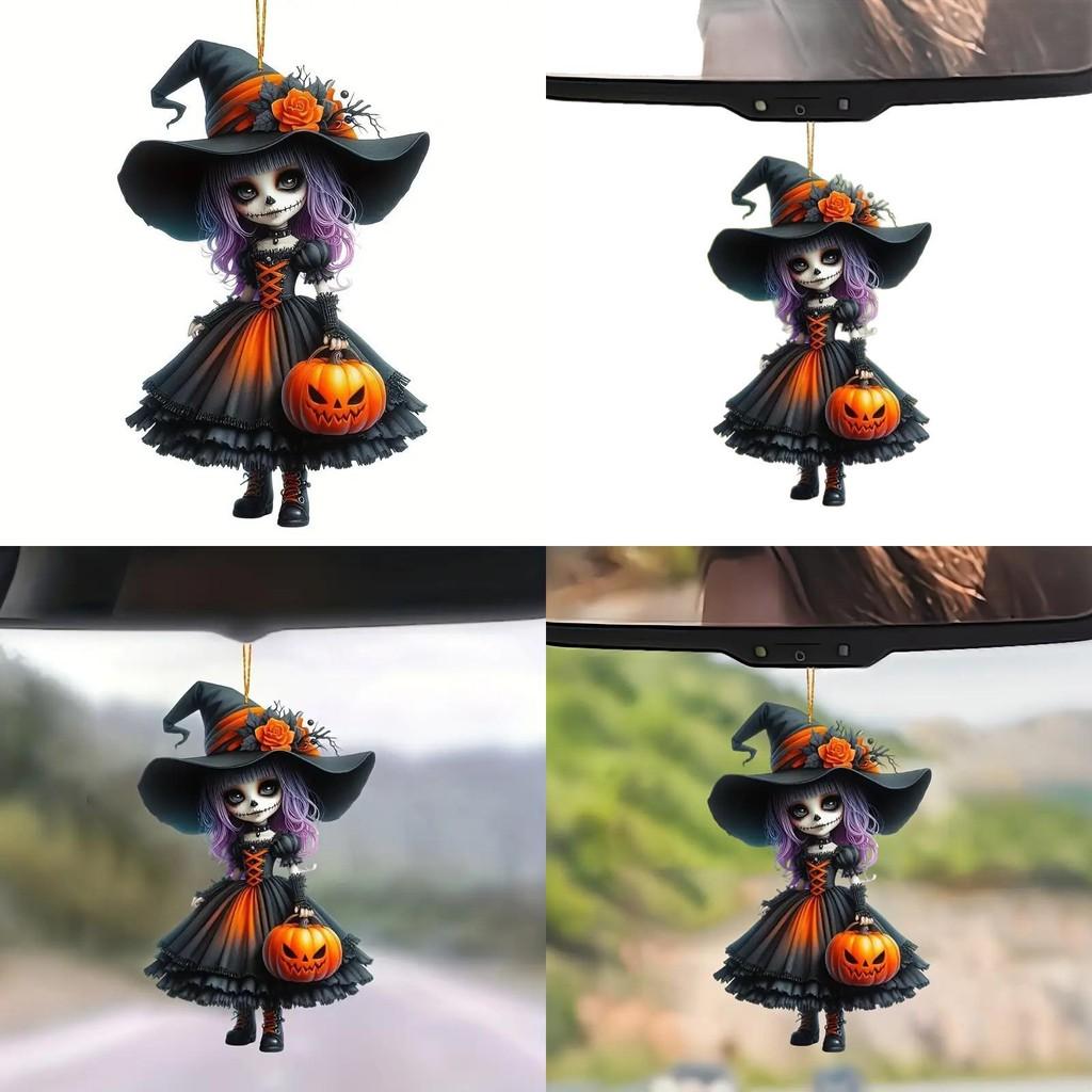 Декор салона автомобиля Акриловый милый кулон-зеркальце с ведьмой Украшение на рождественскую елку