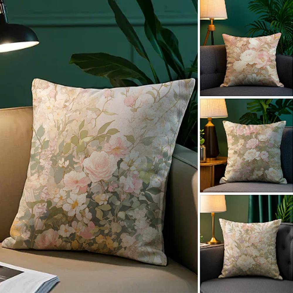 Эстетичная наволочка в стиле R-Roco-coS с цветочным принтом, защита от пылевых клещей, невидимая молния, шелковистая короткая плюшевая наволочка для диванной подушки.