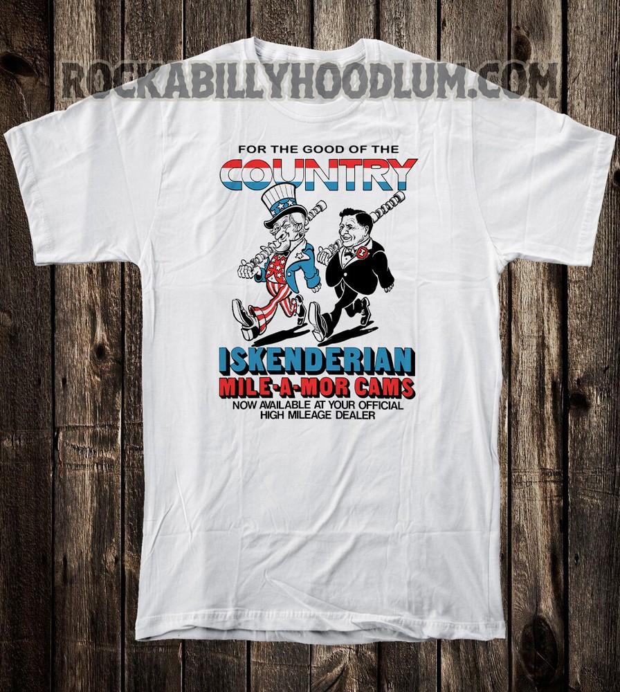 Retro Hot Rod Tee T Shirt Drag Race Auto Speed Shop Isky Cams USA Iskenderian