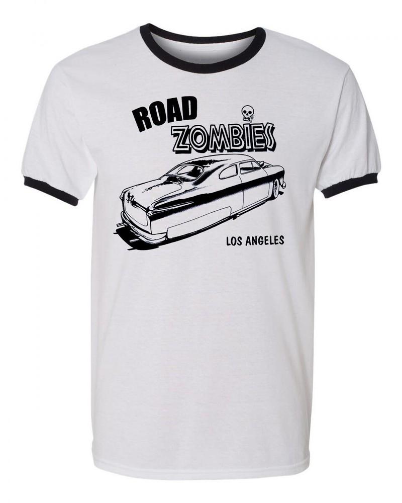 Unisex Ringer Tee T-shirt Cotton Novelty Road Zombies LA CA Car Club Hot Rod