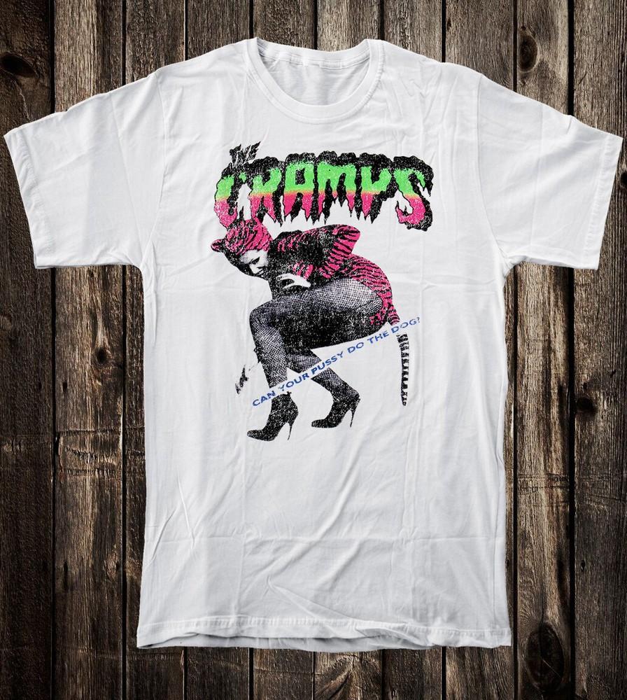 Retro Tee T Shirt 100% Cotton 80's Punk Style The Cramps Pussy Do The Dog — купить товар онлайн с бесплатной доставкой по всему миру!