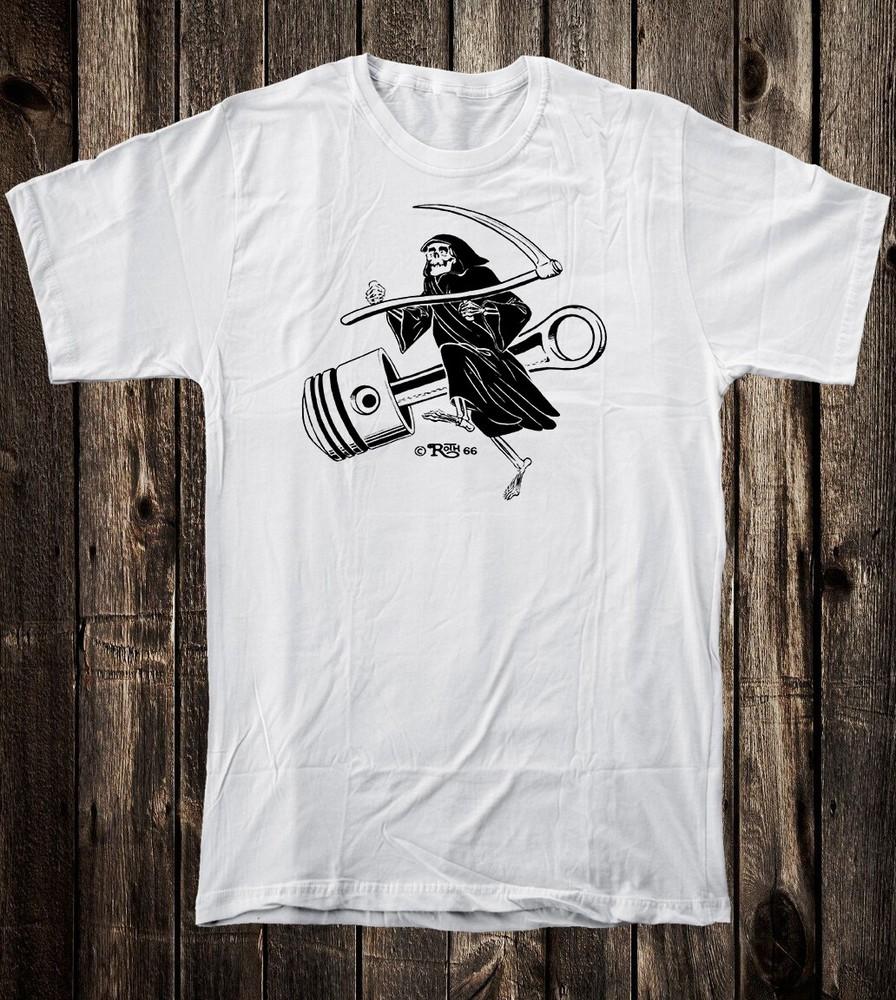 Retro Hot Rod T Shirt Tee 100% Cotton Motorcycle Roth Studios Grim Reaper Piston