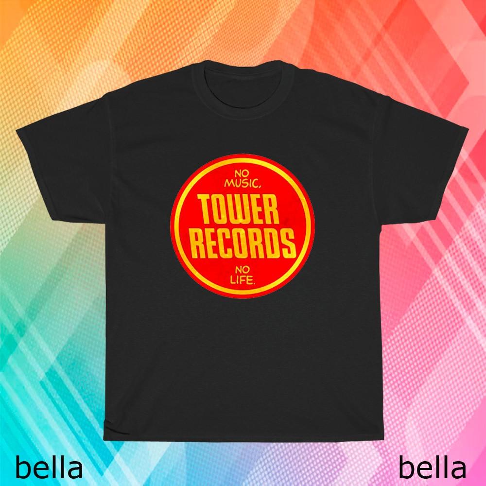 New Design Tower Records No Music No Life Logo T-Shirt Funny Size S to 5XL