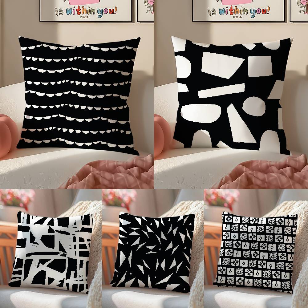 Черно-белая наволочка с абстрактным принтом Комфортная для дивана-кровати Шелковистая элегантная Невидимая молния Декоративная наволочка