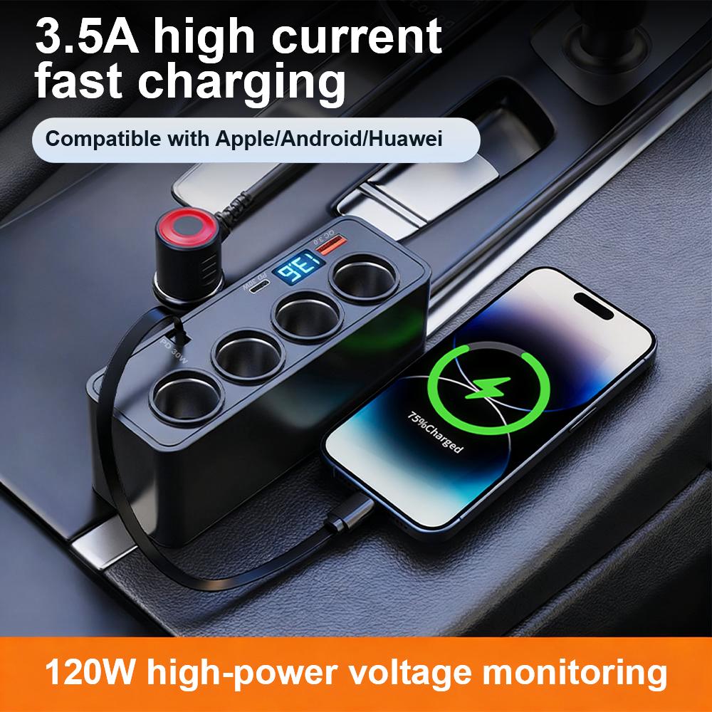 Быстрая зарядка Многофункциональный автомобильный цифровой дисплей Автомобильное зарядное устройство Кабель для быстрой зарядки Автомобильный адаптер зарядного устройства USB Быстрая зарядка Универсальный QC3.0+PD TypeC