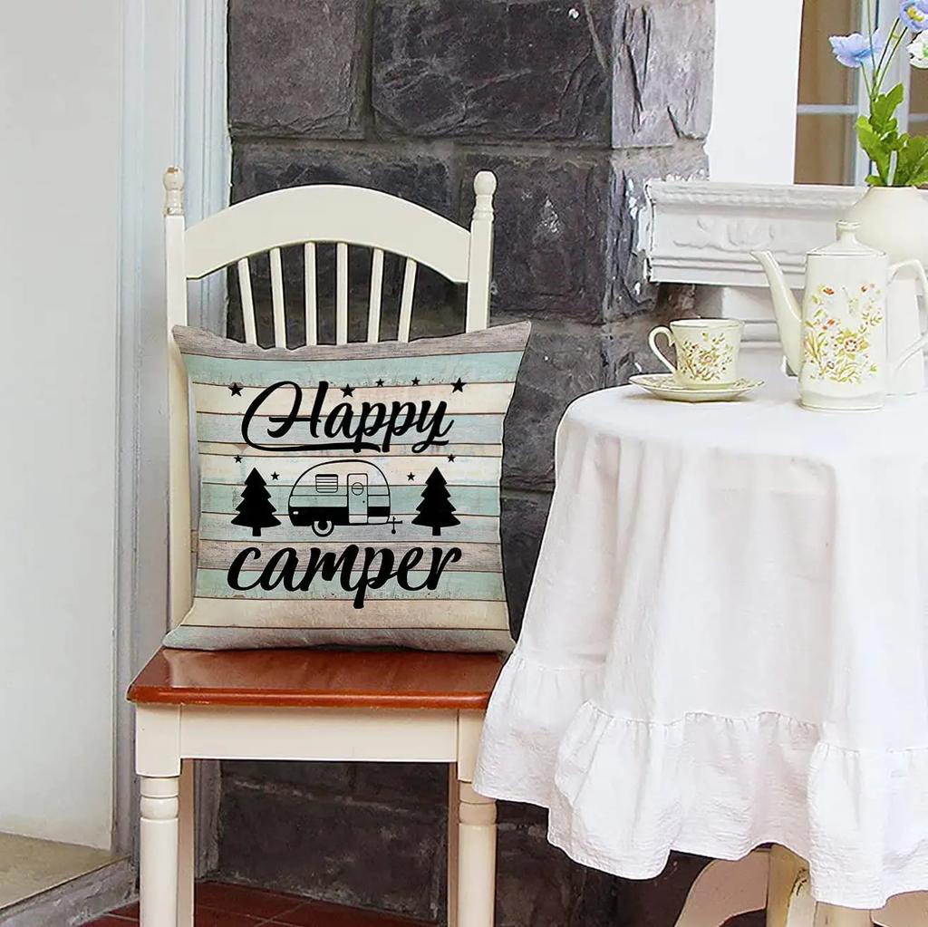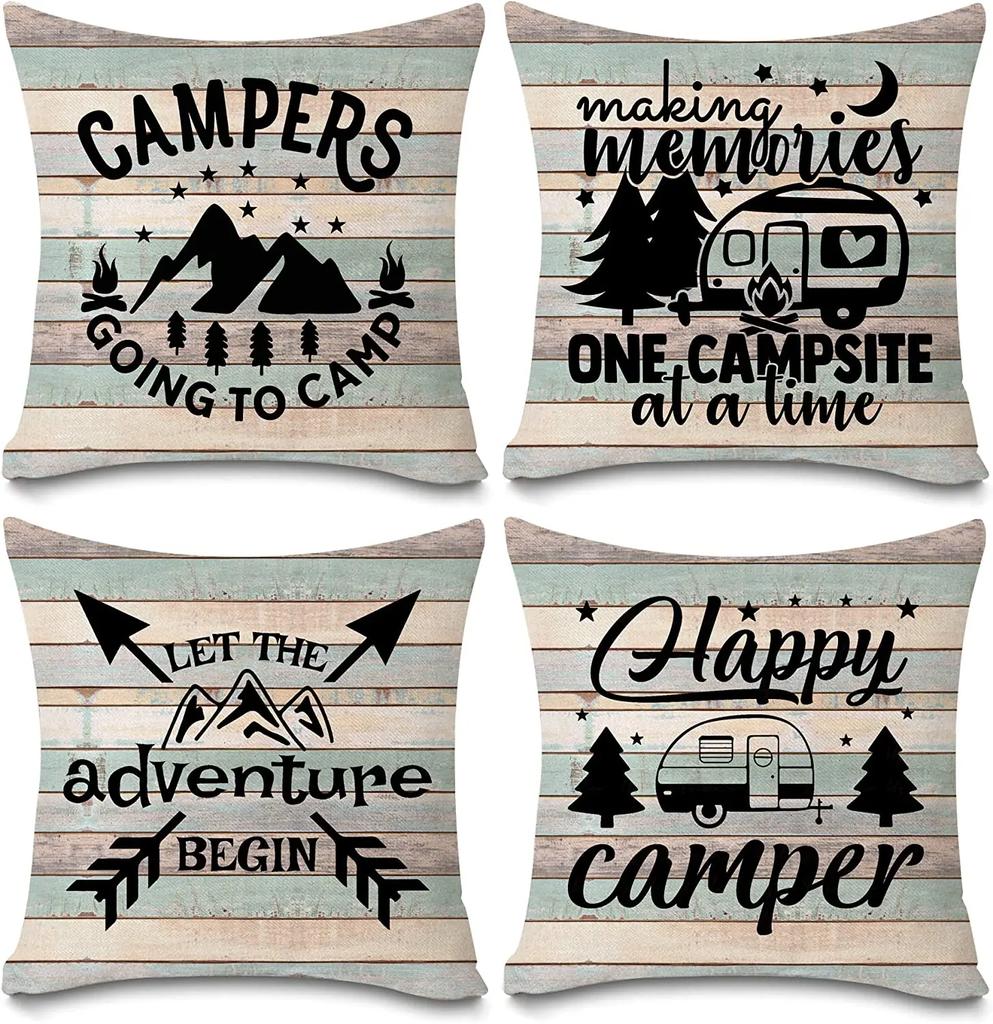 Наволочки Happy Camper Винтажный Рустикальный Деревянный Фон Вдохновляющие Цитаты Домашний Декор На Открытом Воздухе Декоративные Наволочки Набор из 4 штук