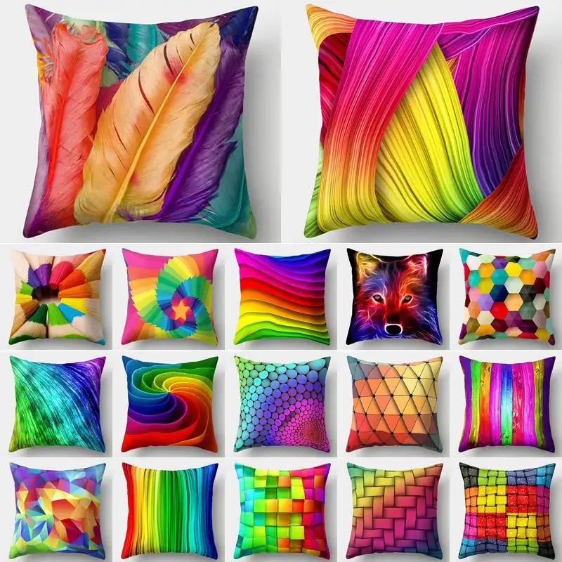 Подушка-подушка «Радуга», разноцветные геометрические перья, полиэстер, декор для дома, диванная подушка 40544