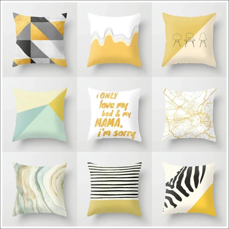 Желтый чехол для подушки с геометрическим принтом, короткая плюшевая наволочка 45*45 см, домашний стул, диван, декоративные квадратные наволочки