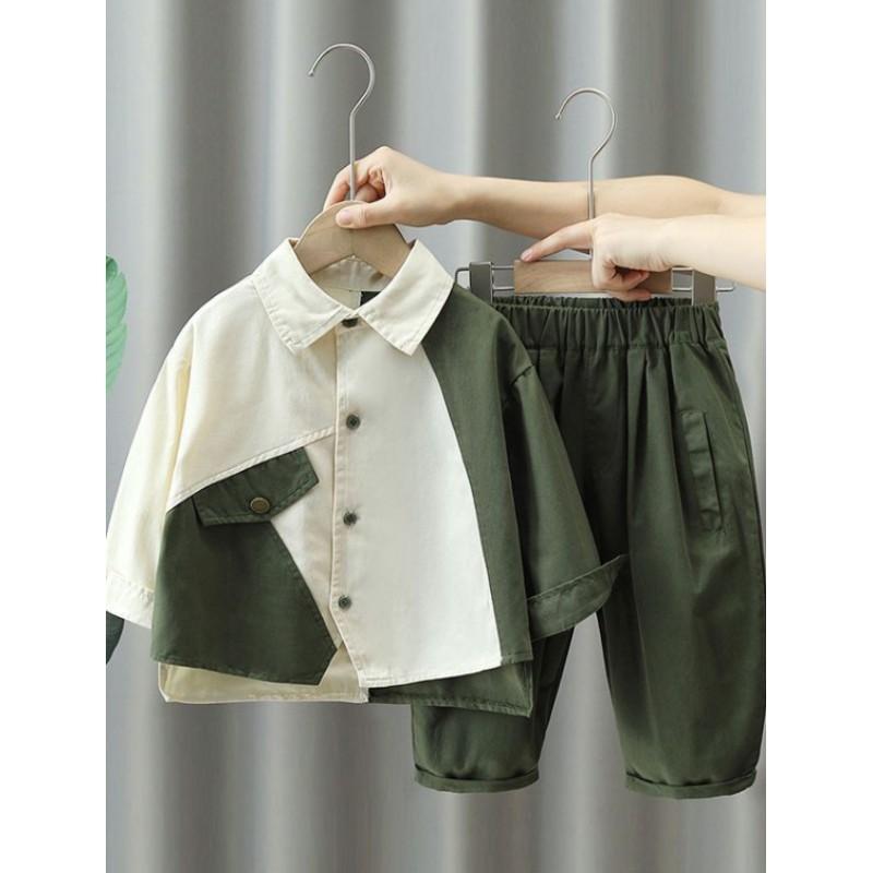 Детский комплект для мальчиков на весну и осень, красивый комплект из двух предметов: рубашка с длинным рукавом + брюки