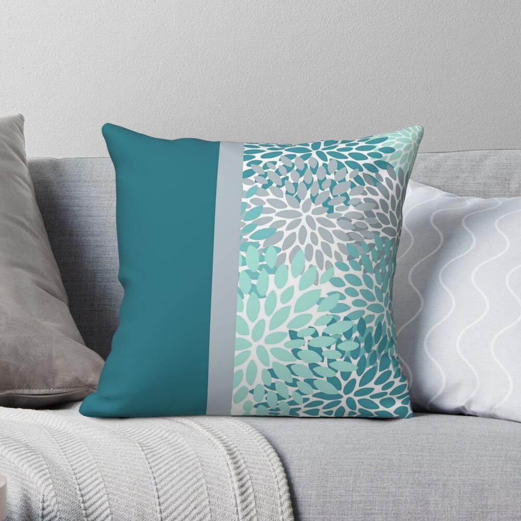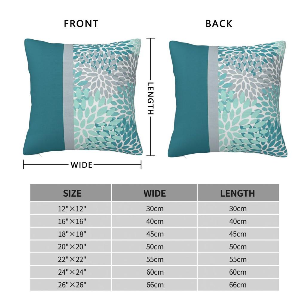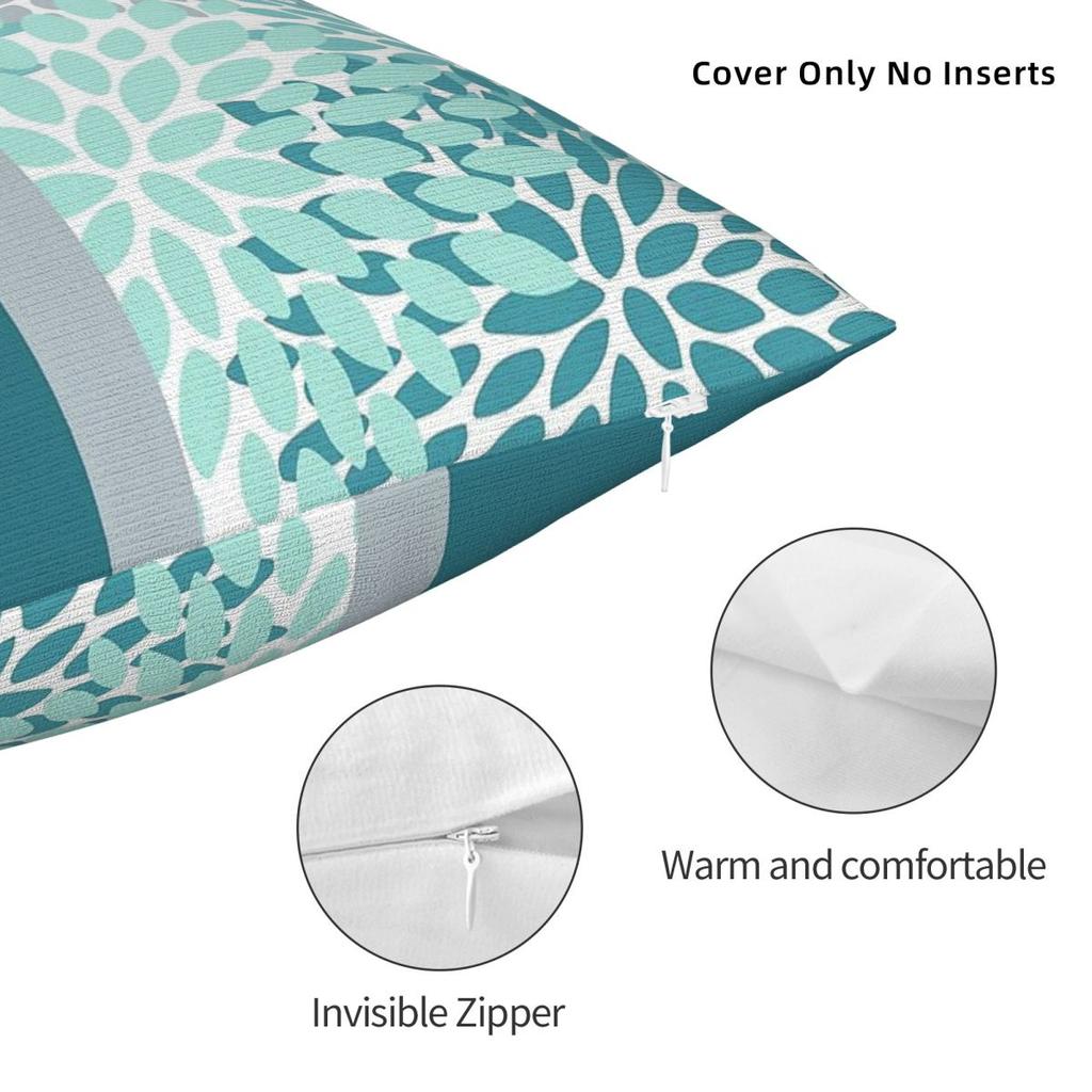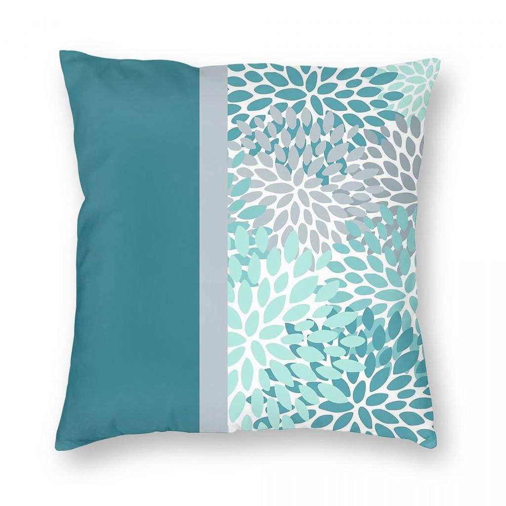 Цветочный Бирюзовый Серо-голубой Квадратная Наволочка Полиэстер Лен Бархат Узор Молния Декоративная Наволочка для Домашней Подушки 18"