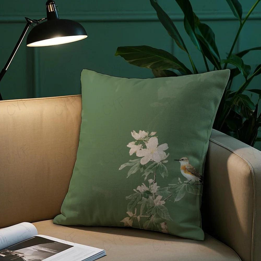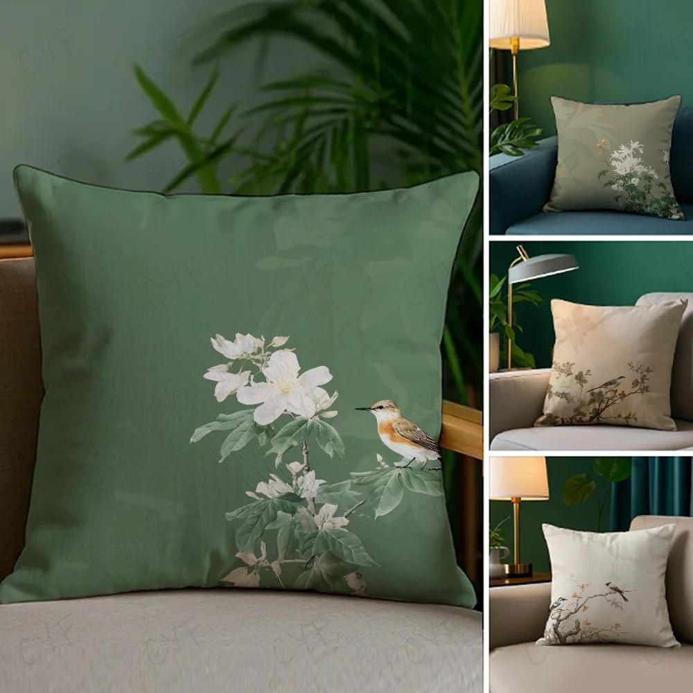 Цветок в китайском стиле Цветочный принт с птицами Наволочка Наволочка Защита от пылевых клещей Подушка Невидимая молния Шелковистый короткий плюш Соф