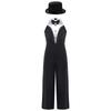 Девочки Джазовый Танцевальный Костюм Металлический Пэчворк Комбинезон Стразы Цветные Блоки Без Рукавов Боди Фетровая Цилиндр
