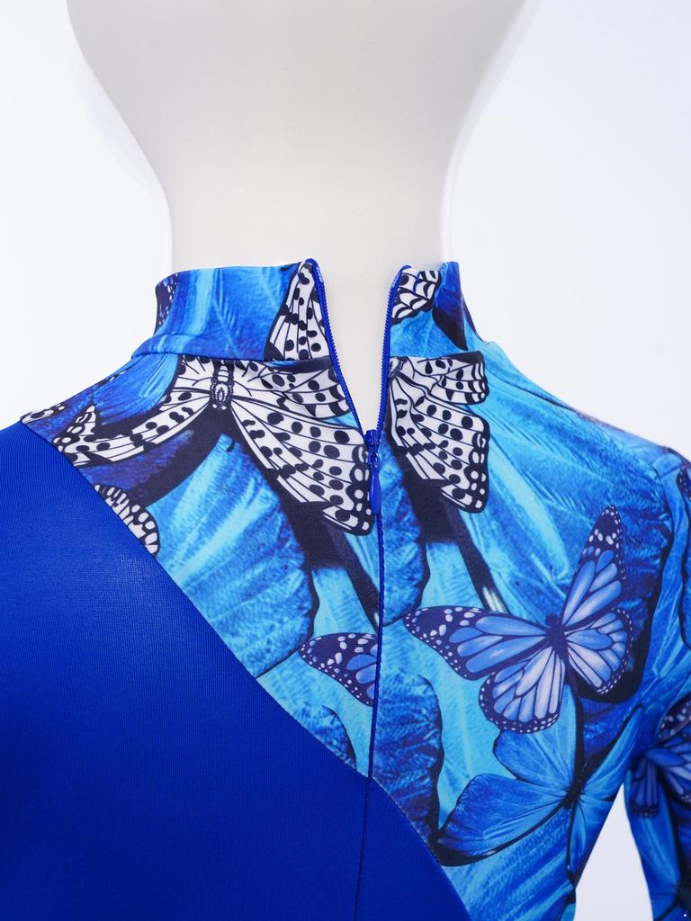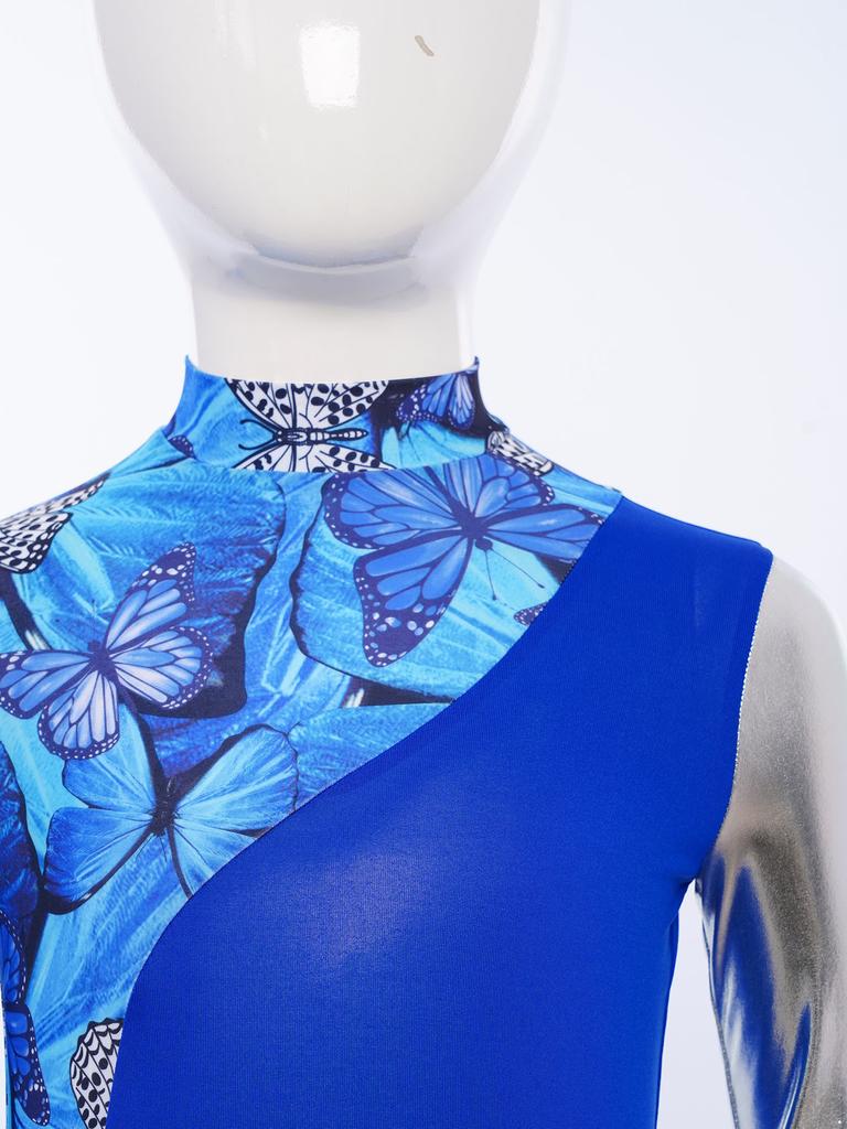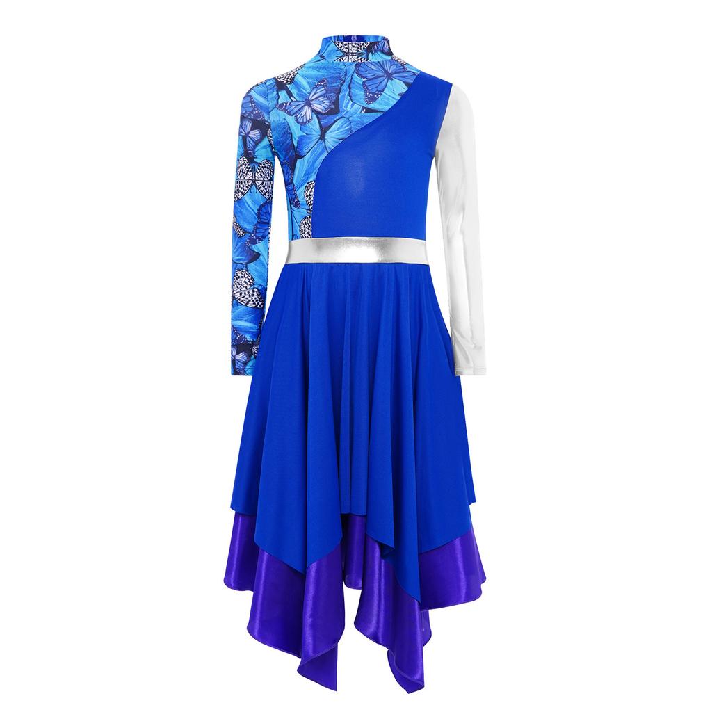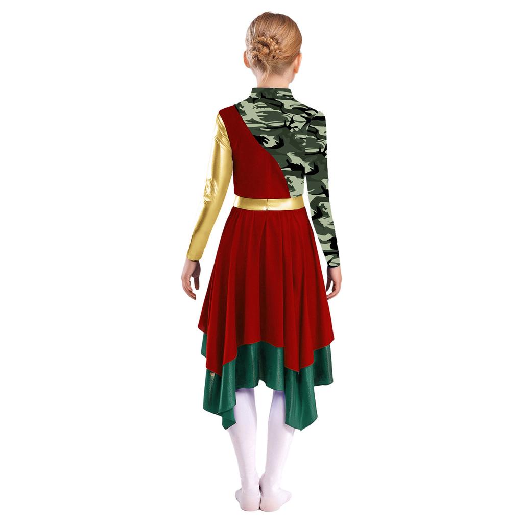 Платье для литургического танца для девочек, с воротником-стойкой, длинным рукавом, стильным принтом, металлическим цветовым блоком, асимметричное