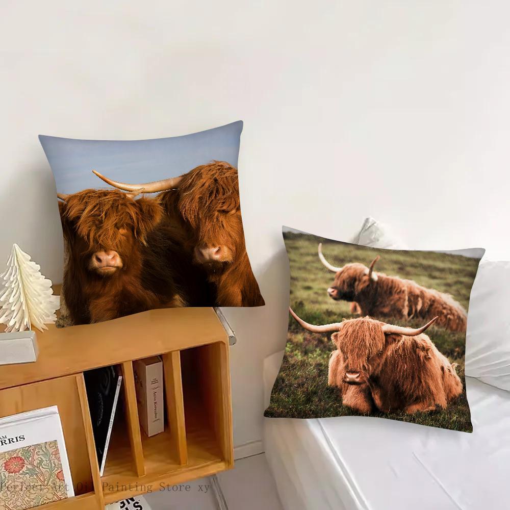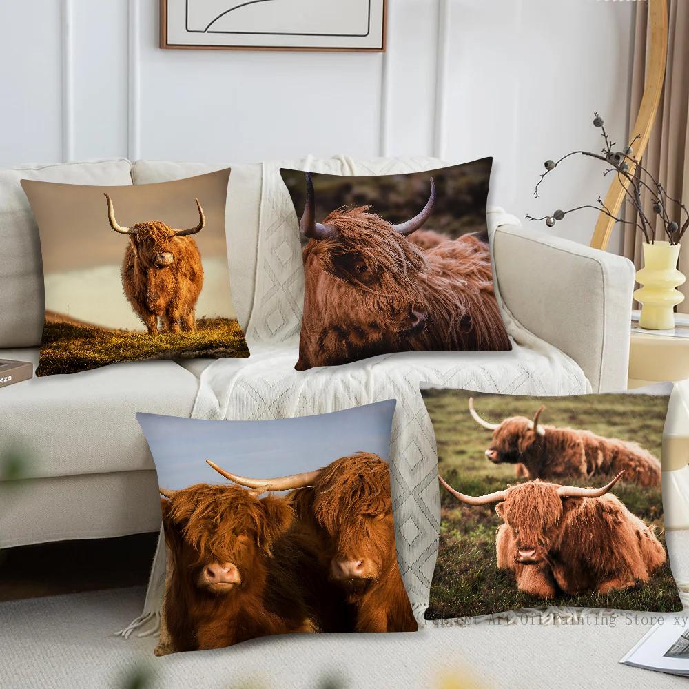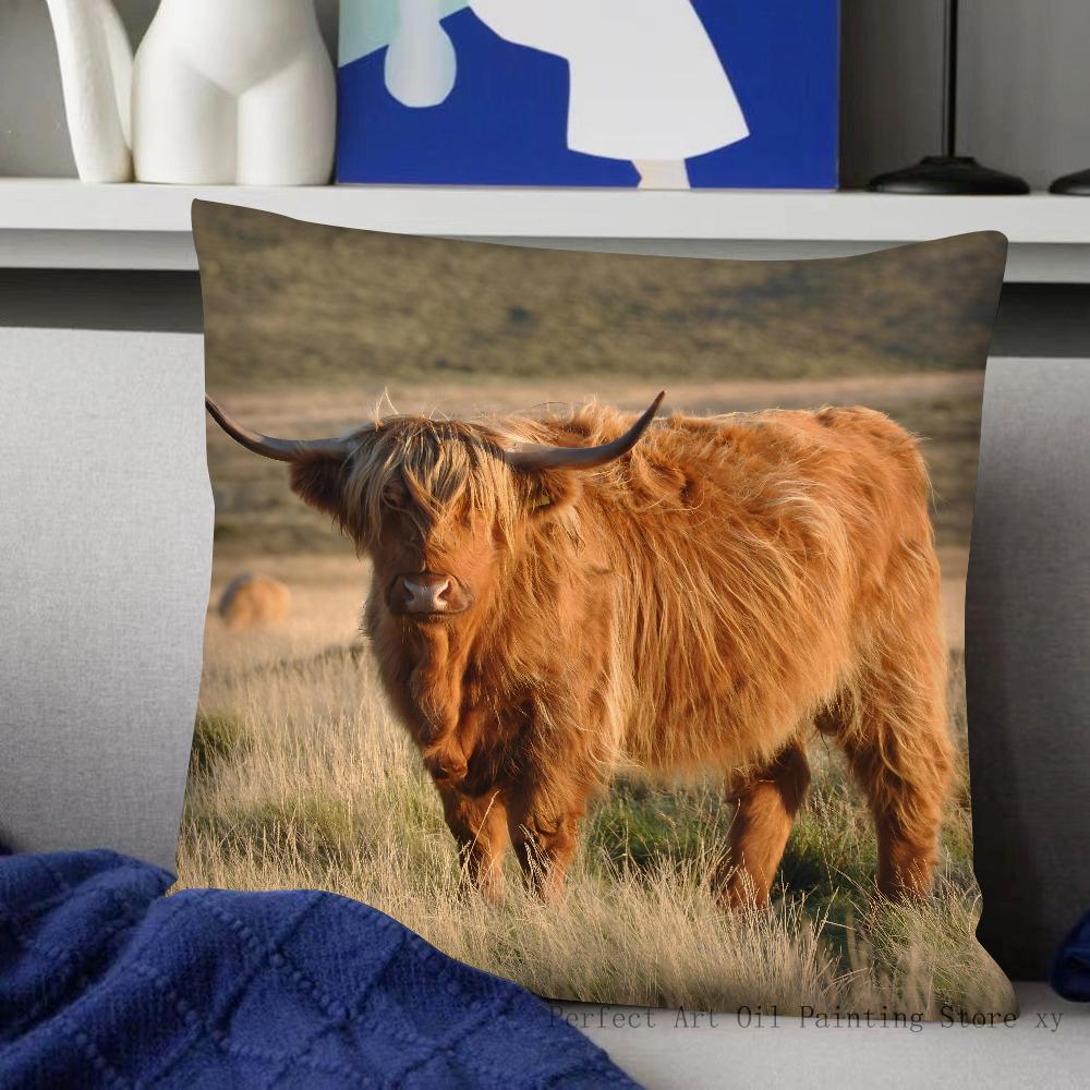 Наволочка для подушки Шотландская высокогорная корова Модная квадратная наволочка Спальня Диван Комната Ин Декор Подушка для отдыха Чехол 40x40