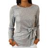 Изысканное сочетание материалов для максимального комфорта: Этот топ, изготовленный из премиального полиэстера с добавлением тонких металлических нитей, обладает едва заметным блеском, который красиво играет на свету.. Мягкая, приятная к коже ткань обеспечивает комфорт в течение всего дня, сохраняя при этом изысканную текстуру, что делает ее идеальной как для повседневных, так и для официальных мероприятий.