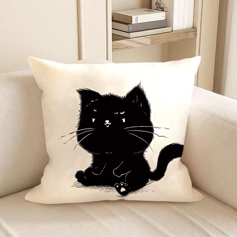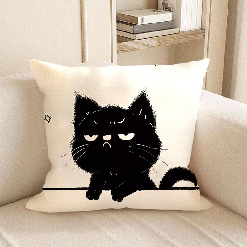 Милая мультяшная наволочка на декоративную подушку с черным котом - Минималистичный животный домашний декор
