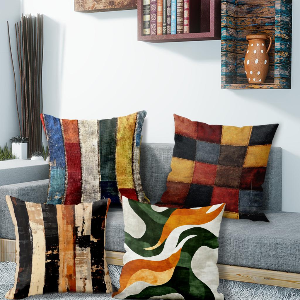 Красочные лоскутные наволочки для диванных подушекПодходят для дивана, автомобиля, спальни, декоративная наволочка для подушки