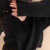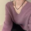 Женский корейский трикотажный свитер с V-образным вырезом синего цвета - мягкий пуловер свободного кроя для осени/зимы. — купить товар онлайн с бесплатной доставкой по всему миру!