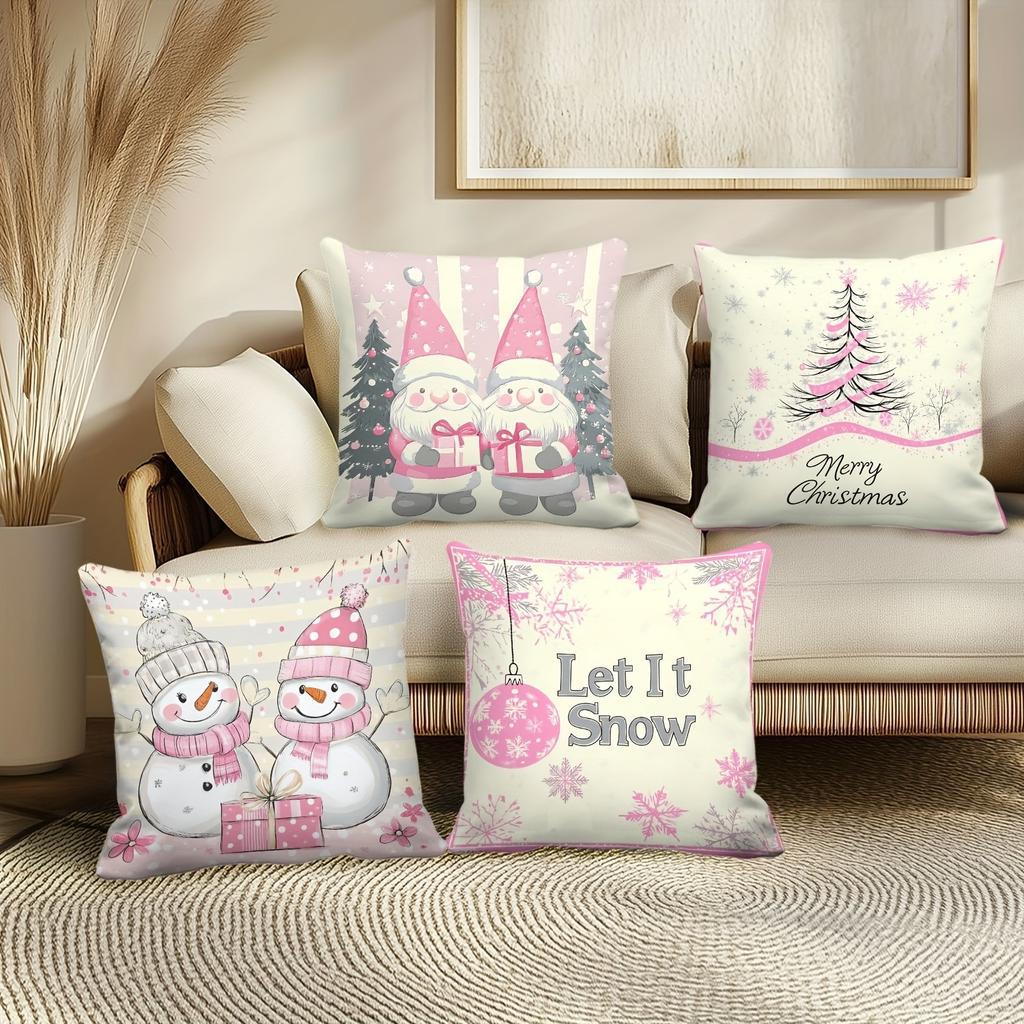 Рождественские наволочки с розовым принтом: Пусть Снег и Гномы Санты! диваны, наволочки для спальни, подарки к праздникам
