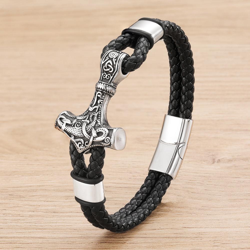 Плетеный викингский браслет из кожаного шнура с магнитной застежкой из нержавеющей стали ручной работы