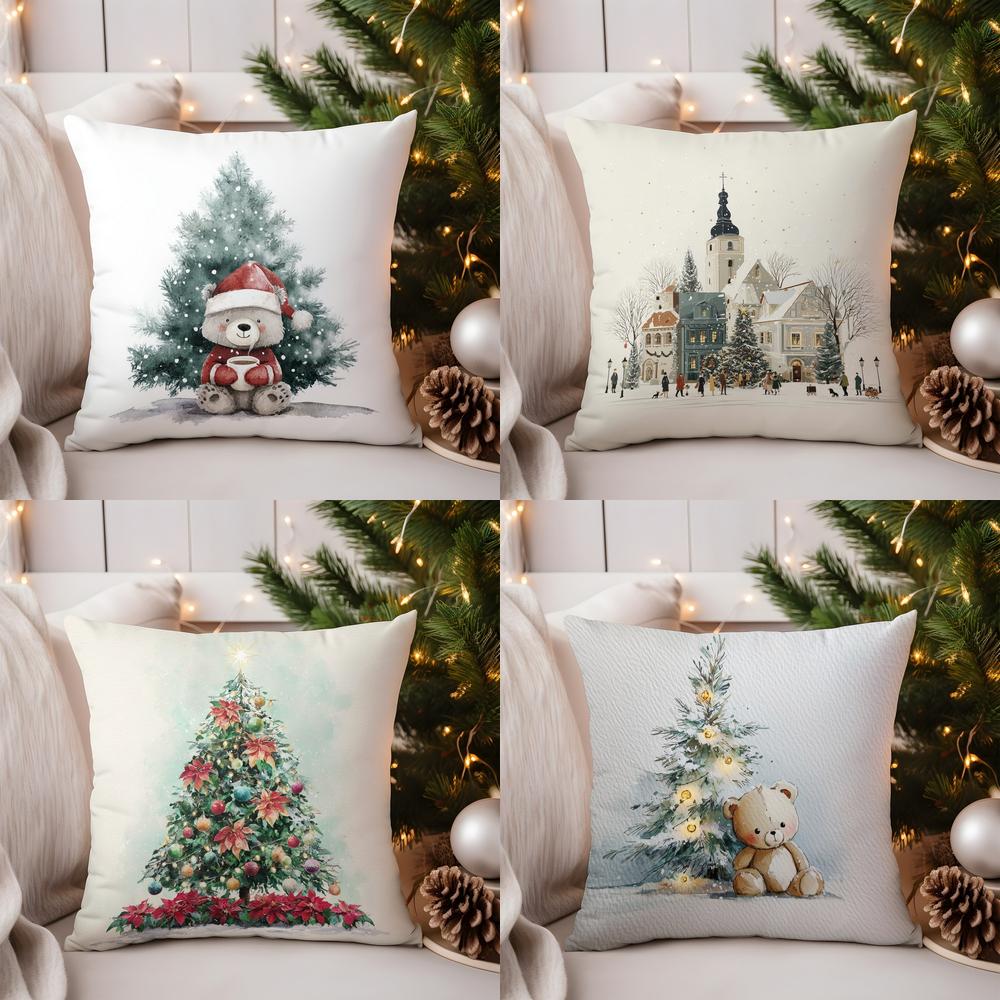 Домашний Декор Рождественский Медведь с Елкой и Чашкой Узор Подушки Наволочка Подходит для Дивана Спальни Автомобиля Наволочка