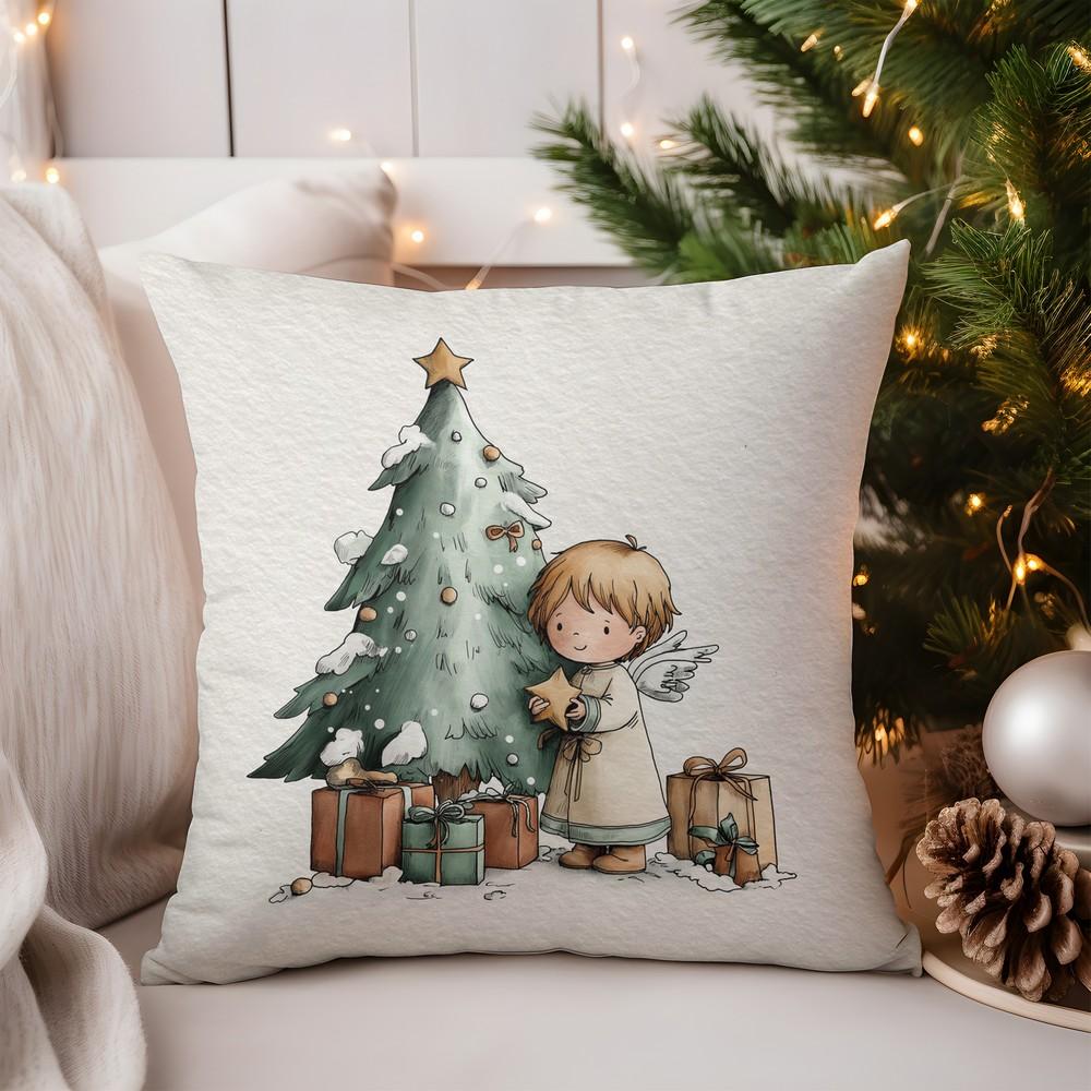 Домашний Декор Рождественский Ангел и Елка Декоративная Подушка Выкройка Наволочка Подходит для Дивана Спальни Автомобиля Наволочка