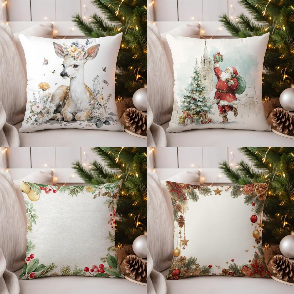 Home Decor Deer with Flowers and Butterflies Pillow Cover Pattern Cushion Cover Suitable for Sofa Bedroom Car Pillow Cover