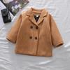 Осенняя модная куртка для мальчиков, однотонное двубортное длинное шерстяное пальто с лацканами для мальчиков 2-6 лет, красивая верхняя одежда