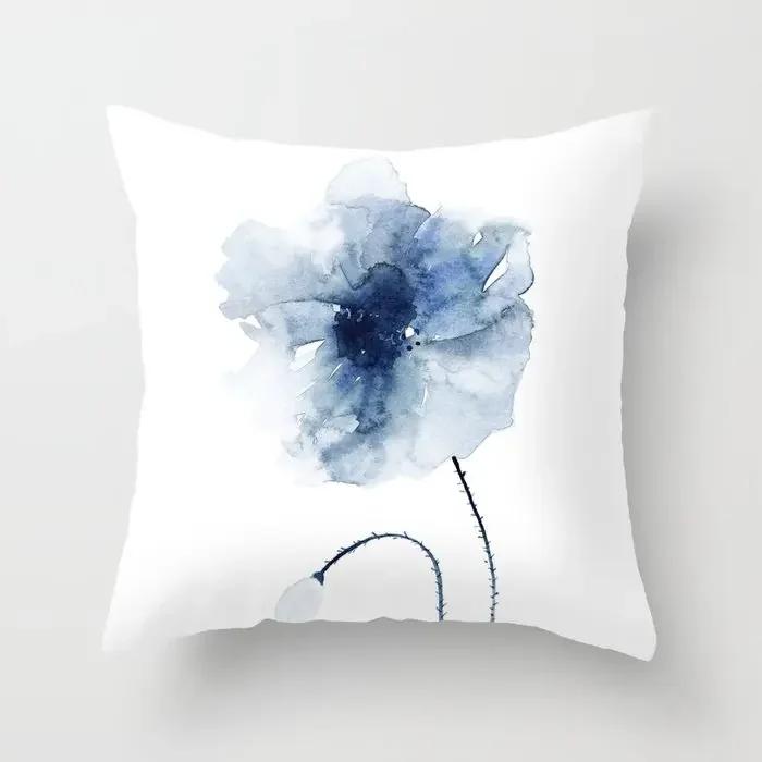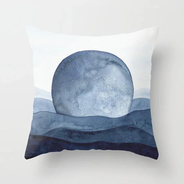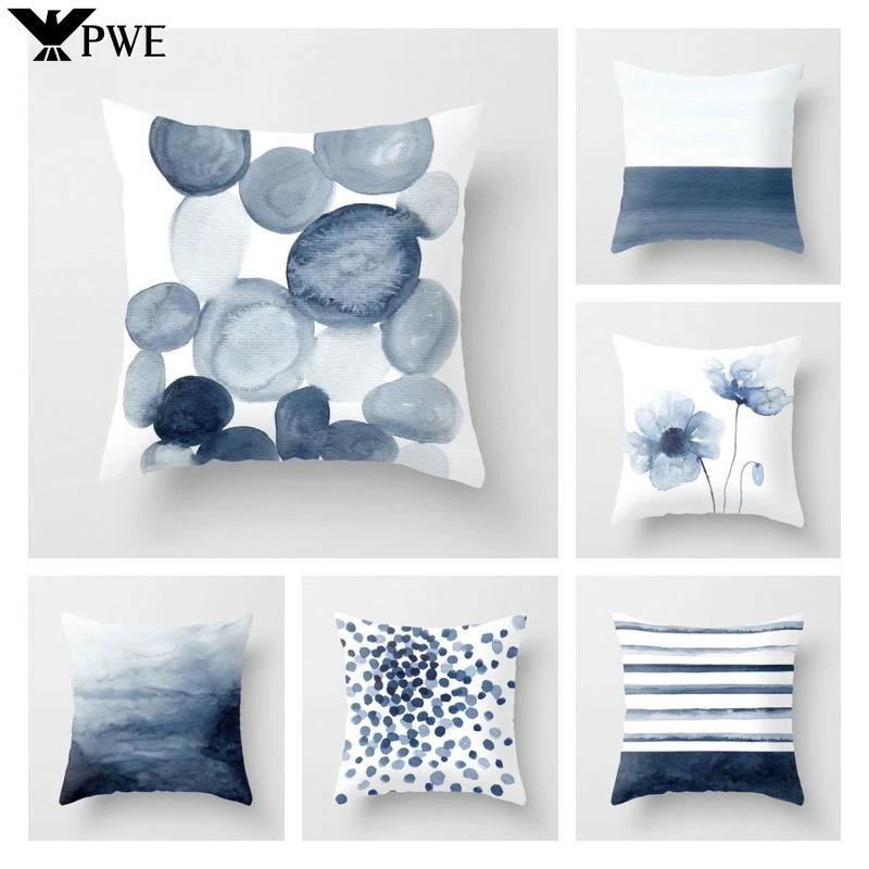 Watercolor Blue Cushion Cover Abstract Marble Geometric Pattern Sofa Pillowcase Bedroom Home Decor Car Office Decorative 45x45cm
