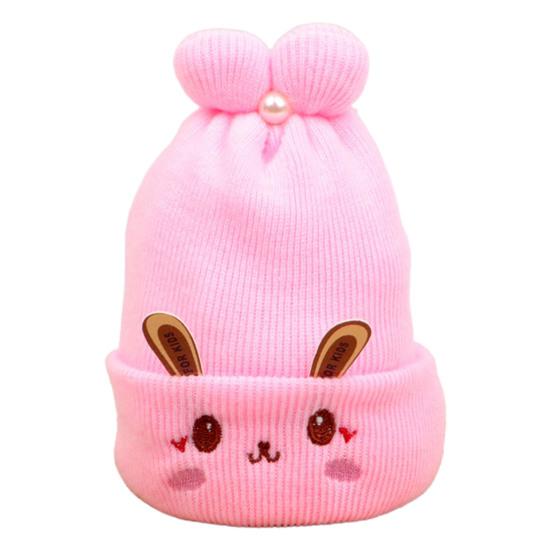 0-6 Месяцев Вязаная Шапка Ушки Кролика Вышивка Лицо Плиссированный Верх Декор Имитацией Жемчуга Эластичная Защита Ушей Более Плотная Осень Зима
