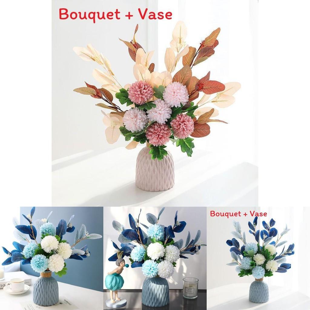 This artificial floral arrangement features durable polyester fabric, crafted through casting techniques,The set includes a decorative vase and multiple floral bundles, designed to enhance living room or dining area decor. Ideal for home or office space decoration, these flowers add a vibrant touch without maintenance. Wipe clean with a damp cloth to preserve their appearance.