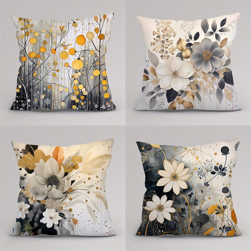 Золотая и серая цветочная наволочкаПодходит для дивана, автомобиля, спальни, декоративная наволочка для подушки