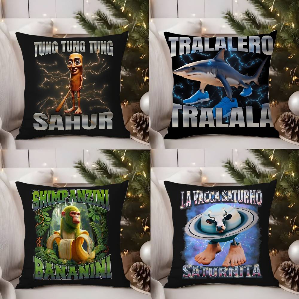 Italian Brain Rot Meme Tralalero Tralala Pillow Case Happy Atmosphere Short Plush Double-sided Printing Home Cushion Cover