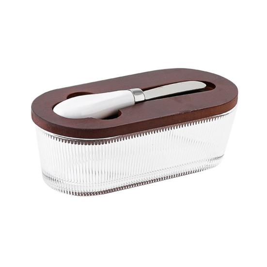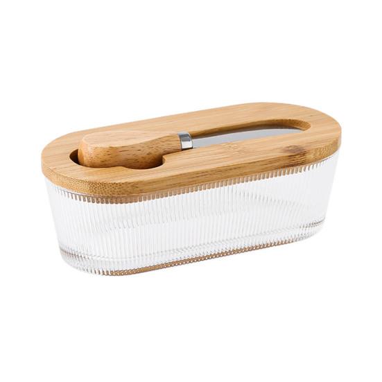 Крышка из натурального бамбука добавляет элегантности вашей столешнице и обеспечивает высококачественную герметичность, чтобы сохранить ваши бруски масла чистыми в холодильнике..
