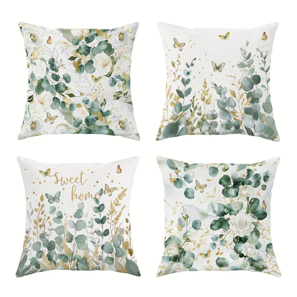 Свежий эвкалипт и цветочные весенние наволочкиЧехол для подушки на диван в гостиной, мягкий и удобный, украшение для спальни