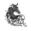 Сложный трехмерный мотив лошади: Эта брошь, изображающая поразительную фигуру лошади, дополненную рогами дракона, чешуей и развевающейся гривой, воплощает динамичное сочетание силы и мистики.. Детализированная скульптура оживляет мифическое существо, добавляя глубину и характер, которые делают его выдающимся аксессуаром.. Этот уникальный дизайн понравится любителям фэнтези-арта и тем, кто ищет смелые акцентные вещи.
