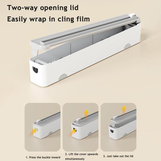 Представляем резак для пищевой пленки, незаменимый кухонный аксессуар для легкой упаковки! Этот инновационный инструмент оснащен двусторонним скользящим резаком для эффективной резки, что экономит ваше время и усилия..