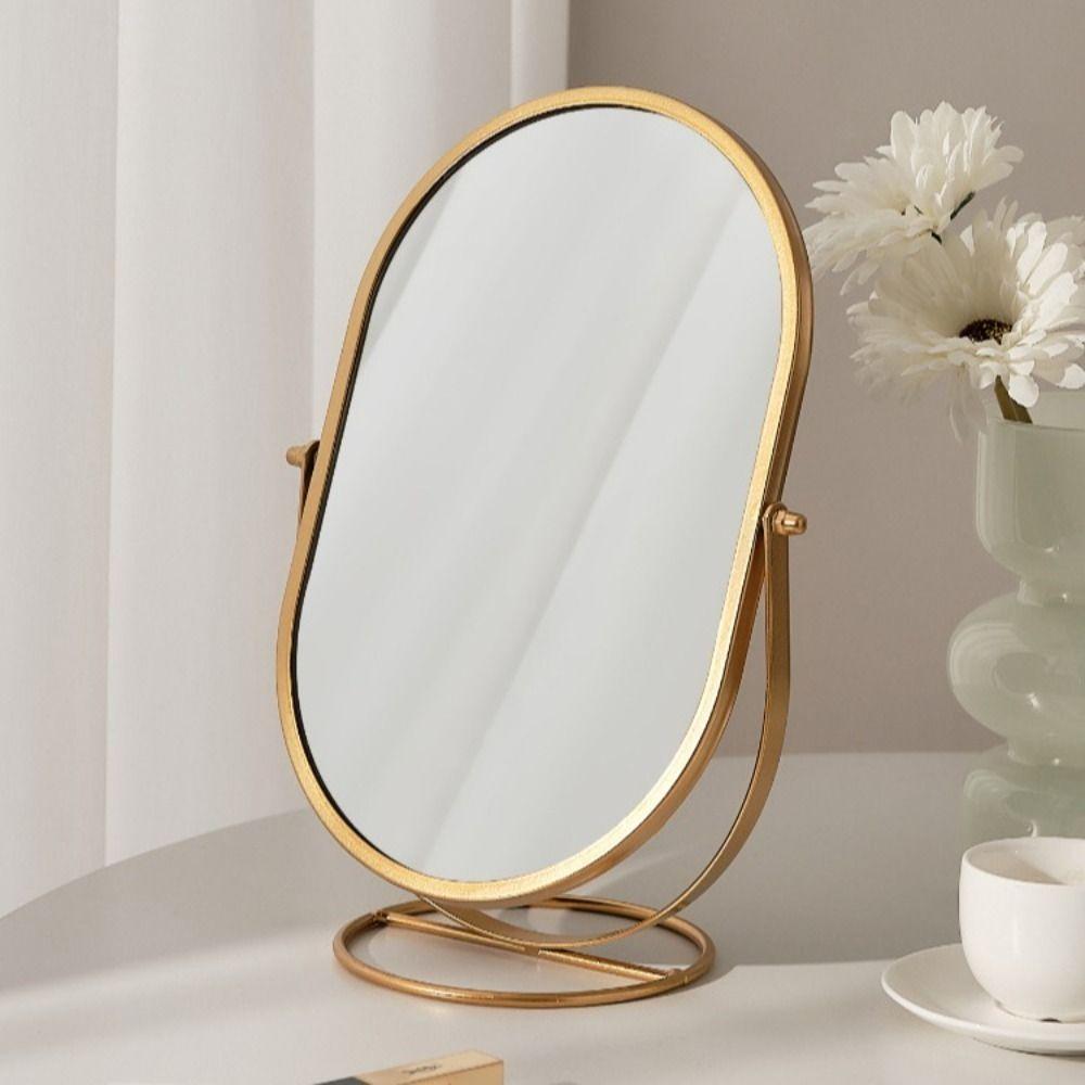 Oval Makeup Mirror Light Luxury Desktop Stand Mirror Iron Art Vanity Mirror Student Dormitory