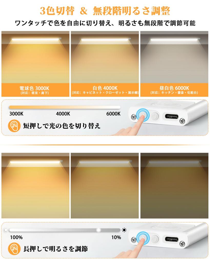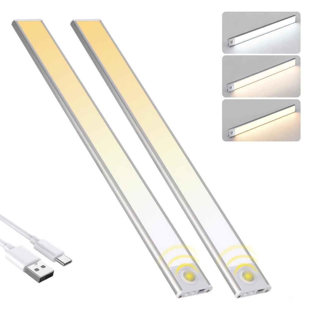 Vividorad [Набор из 2 штук] 30см Светодиодный светильник с датчиком движения, Барный светильник [Не требует проводки, Диммируемый, 3 цвета], Ручной/Ножной светильник, Для помещений, Перезаряжаемый через Type-C,
