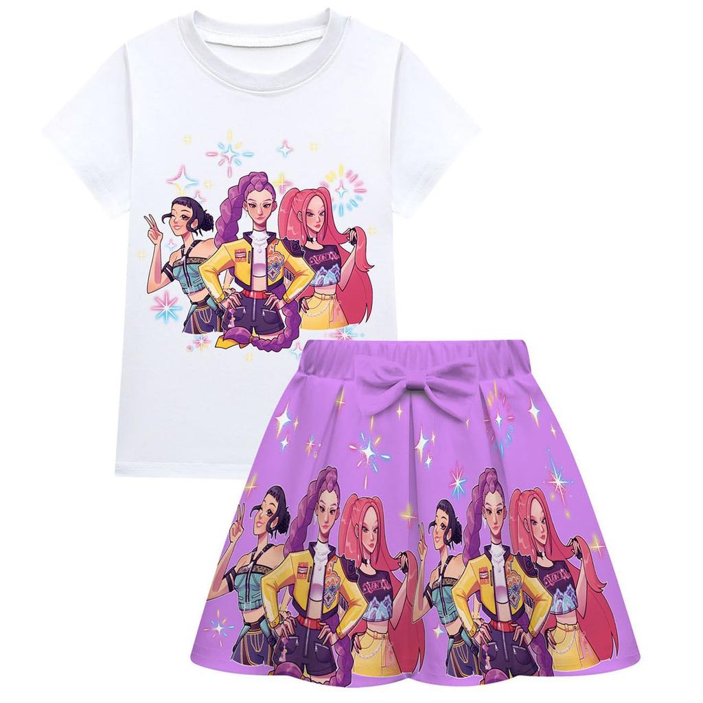 Детский Модный Удобный Косплей Охотницы на Ведьм Аниме Принт Девочки Короткий Рукав Плиссированная Юбка Мягкий Комплект