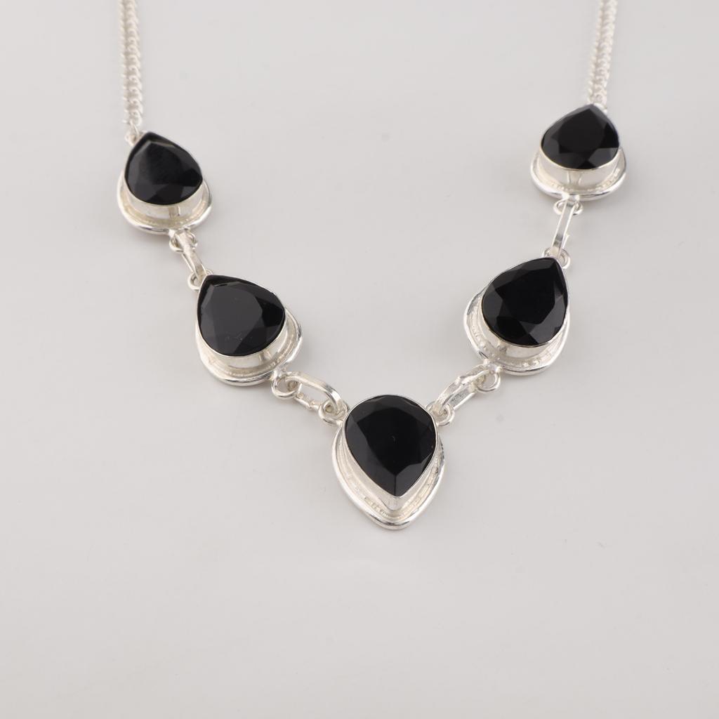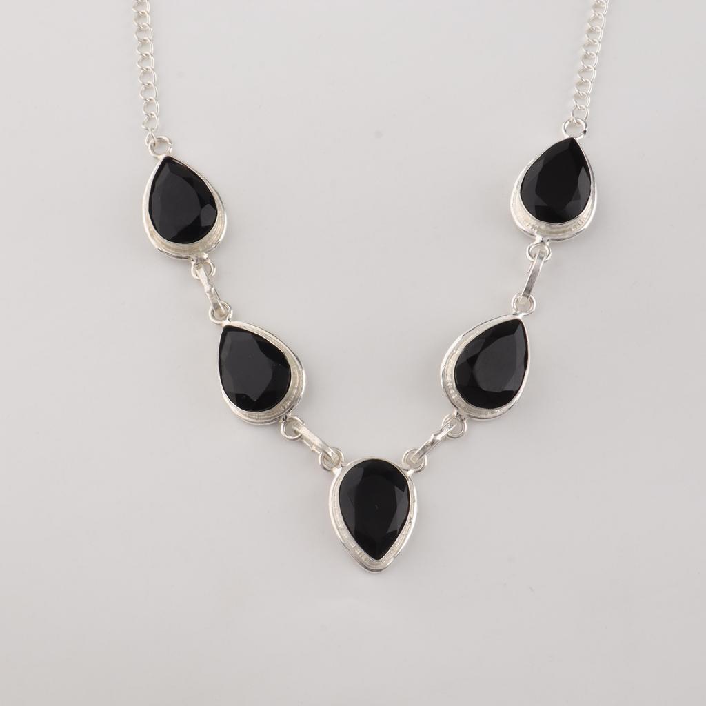 Ожерелье ручной работы из стерлингового серебра 925 пробы с драгоценным камнем черный оникс для женщин, свадебное украшение RN-1-17
