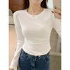 Ретро футболка с длинным рукавом с открытыми плечами женская весенняя новая приталенная плиссированная базовая футболка универсальный простой топ