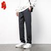 Fengxiao Men's Fleece-Lined Elastic Waist Straight Leg Business Casual Pants