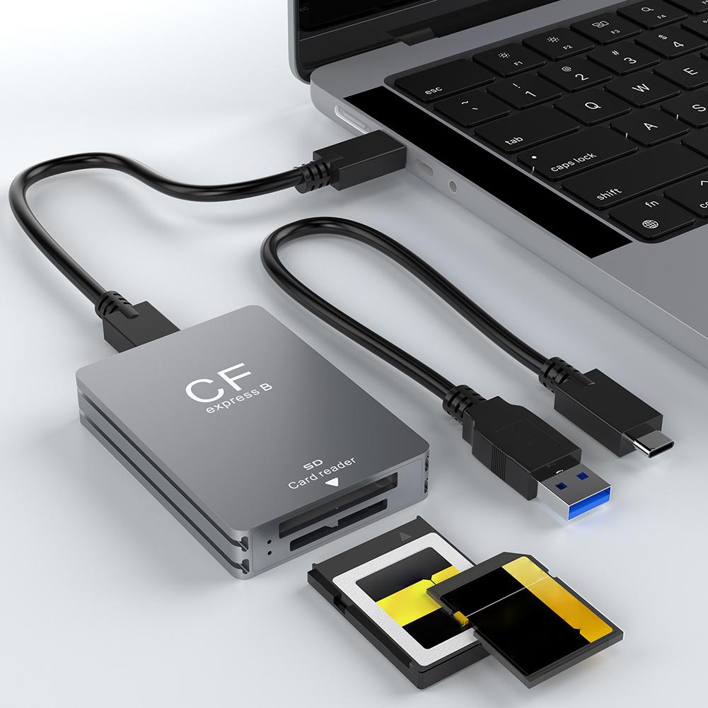 Картридер 2 в 1 CFexpress Type B SD Портативный ридер CF Express USB 3.2 10 Гбит/с Двухслотовый с кабелем USB C - USB C/A Поддержка Android/Windows/ OS для зеркальных камер