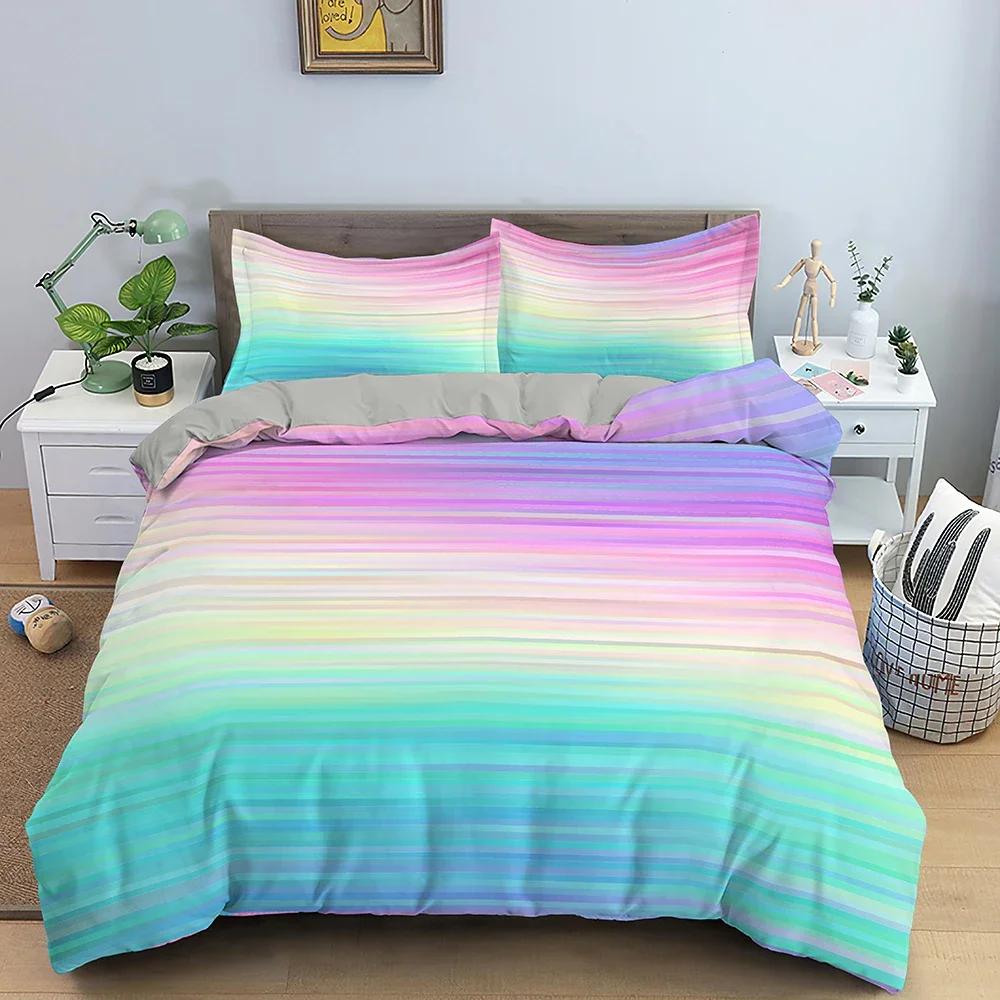 Комплект постельного белья с геометрическим принтом, цветные линии из микрофибры, пододеяльник с застежкой-молнией, размер Queen King, пододеяльник, домашний текстиль