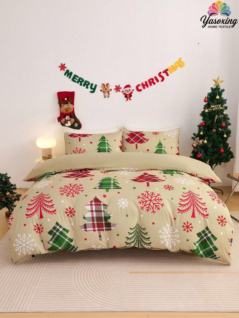 2/3 шт. Розовый Рождественский Снежинка Подарок Пряничный Человечек Снеговик Узор Двусторонний Цвет Пододеяльник Комплект Постельного Белья, Мягкий Дышащий