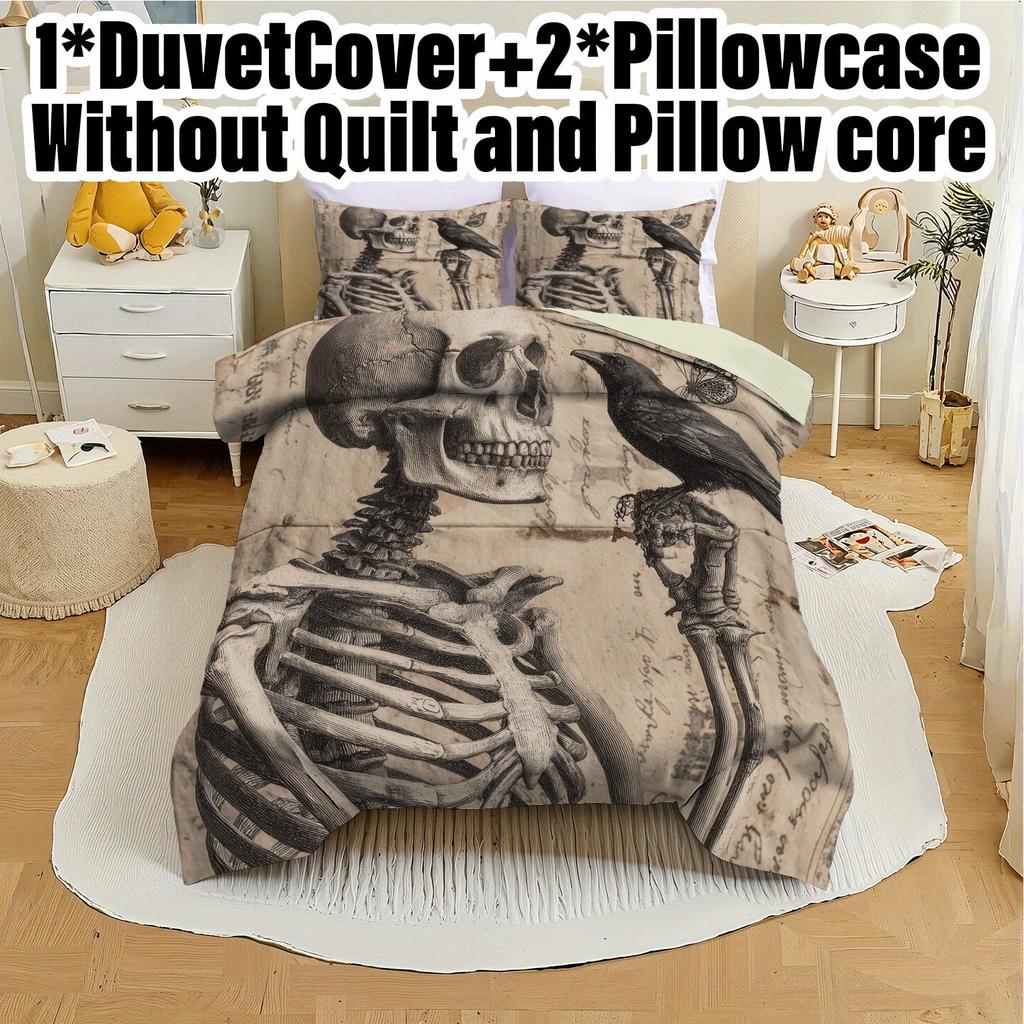 Набор пододеяльников с монстром-тыквой на Хэллоуин из 3 предметов без наполнителя, пододеяльник с 2 наволочкамиМягкий и машинная стирка Скелет