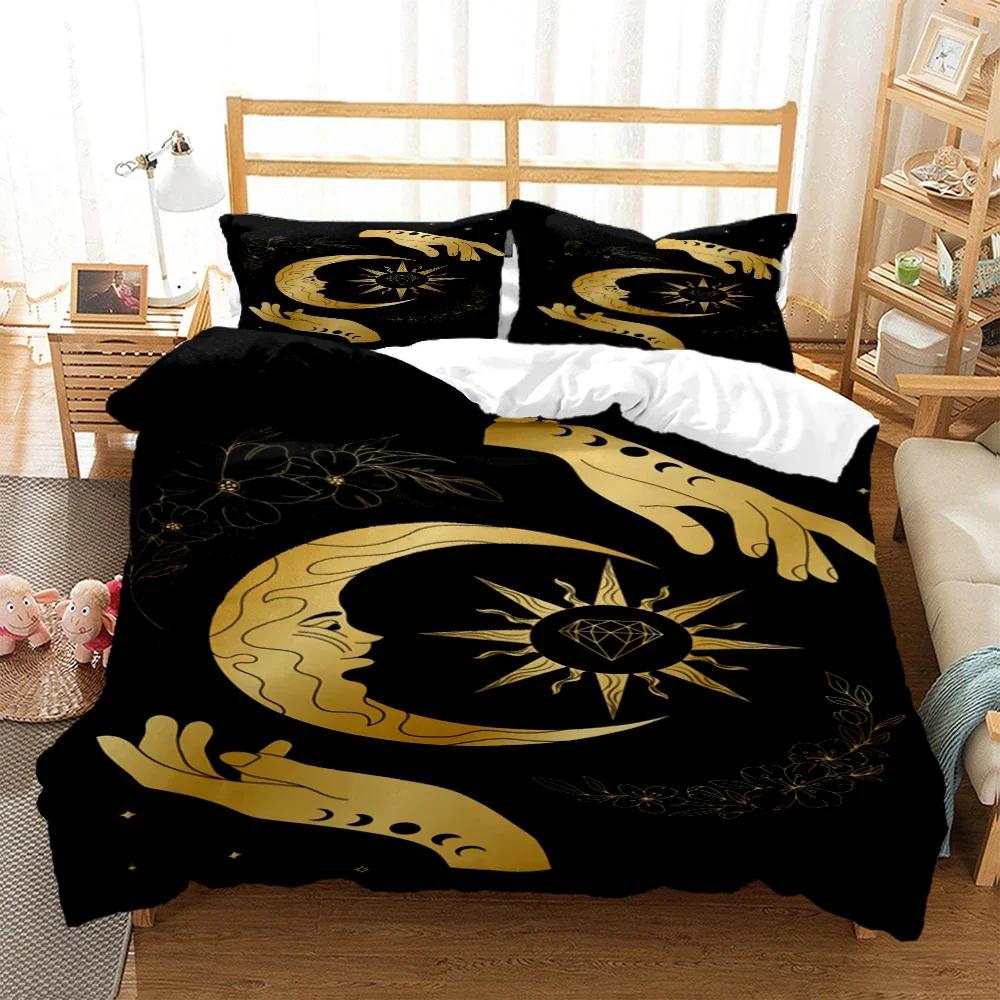 Магическая Астрология Эзотерический Золотой Принт Набор из Трех Предметов Модный Постельный Принадлежность для Детей или Взрослых для Кроватей Пододеяльники Наволочки