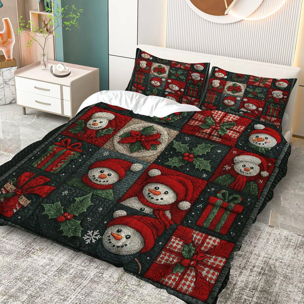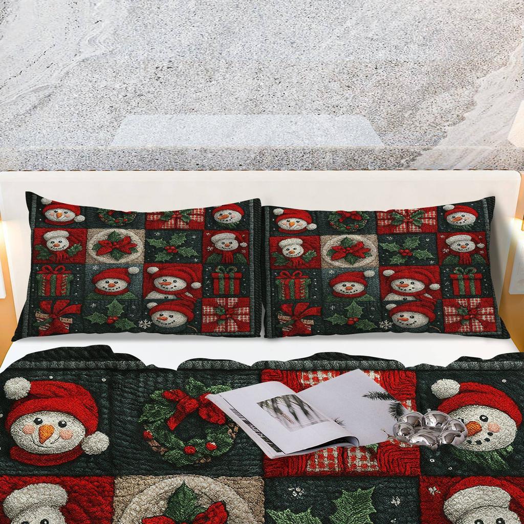 3 шт. Праздничный клетчатый комплект пододеяльника «Снеговик и остролист» - Уютное рождественское постельное белье с застежкой-молнией, машинная стирка