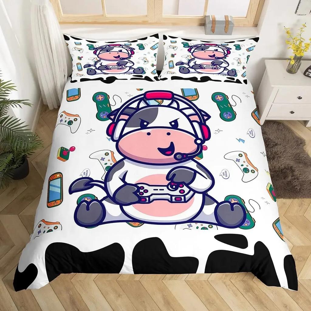 Комплект пододеяльника «Молочная корова» Розовый Белый Корова Клубничный узор Пододеяльник Постельный комплект для девочек Каваии Комплект пододеяльника «Молочная корова»